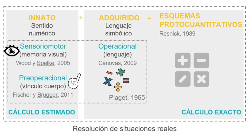 Estas relaciones numéricas entre lo innato y lo adquirido se establecen mediante esquemas aprendidos, que Resnick (1989) definió como esquemas protocuantitativos: