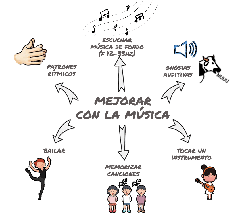 Más allá de tocar un instrumento, se pueden realizar numerosas actividades para mejorar cognitivamente con la música; aunque, como se ha visto, lo más importante es la práctica en el tiempo de las destrezas musicales. Por ello, incorporar rutinas diarias en el aula relacionadas con la música es totalmente imprescindible.