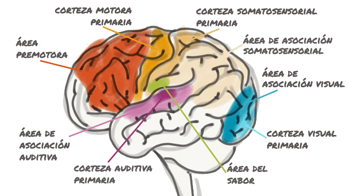 El sistema somatosensorial procesa información acerca del tacto, la posición, el dolor y la temperatura, de ahí que se localice en el lóbulo parietal, íntimamente ligado con lo espacial, y que esté próximo a las cortezas motoras.