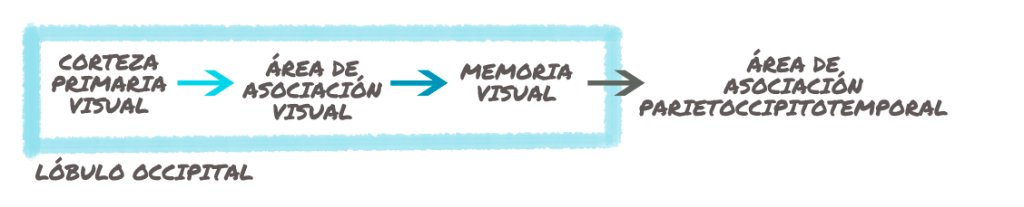 En las gnosias visuo-espaciales, la información se asocia con la recibida del lóbulo parietal (información espacial), de ahí que el área de asociación parietoccipitotemporal sea tan importante: el lóbulo occipital proporciona la información visual; el lóbulo parietal, la espacial, y el lóbulo temporal, la memoria episódica (de los acontecimientos) y semántica (del conocimiento), dotando a los estímulos de significado, proceso denominado como percepción.