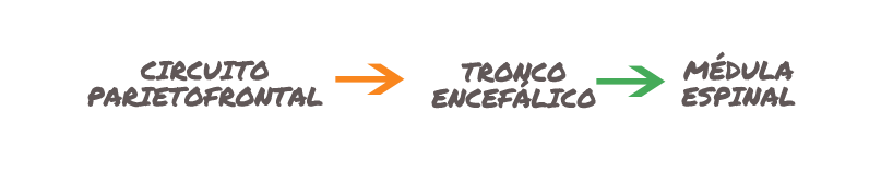 Existe un circuito parietofrontal que integra información sensoriomotora específica, y cuya función es la de transformar la información sensorial en información necesaria para el movimiento. Conecta, por tanto, la corteza frontal, reguladora de la atención y el control y la corteza parietal superior, que comprende múltiples áreas que están implicadas en el análisis de la información sensorial (información visual, auditiva, vestibular, somatosensorial, etc.).